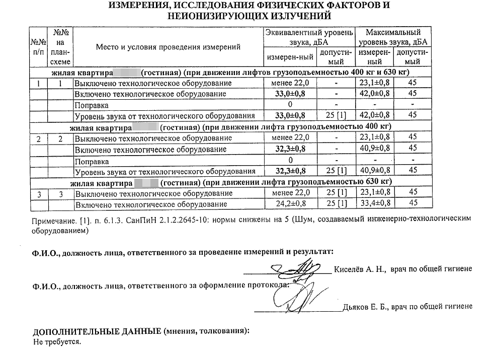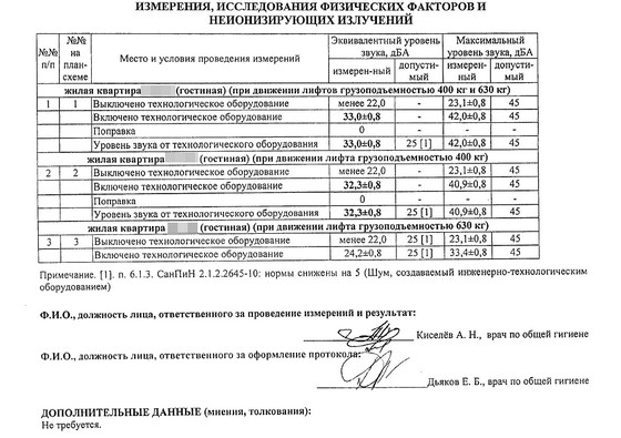 19.02.2020 проведены очередные измерения уровня шума от работы лифтового оборудования в моей квартире. Вот цифры из акта: