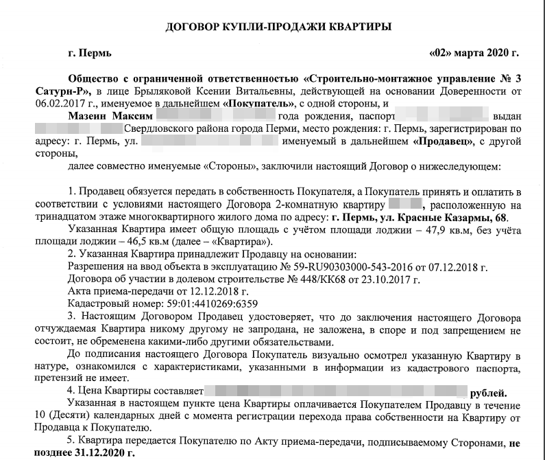2 марта 2020 года заключен договор на продажу моей квартиры Сатурну с правом проживания до конца 2020 года. Так же заключен новый ДДУ на 3х-комнатную квартиру в доме Турчевича, 6, с моей небольшой доплатой, учитывая неустойку, и прочие неотделимые вложения в квартиру.